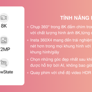 Camera Insta 360×4 là một camera hành trình mạnh mẽ với các tính năng và chức năng như: