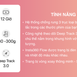 Tay cầm chống rung Insta360 Flow sử dụng hệ thống chống rung 3 trục cùng trang bị vòng xoay thông minh – SmartWheel. Với công nghệ hiện đại, sản phẩm phụ kiện quay phim này sẽ giúp giữ và lấy nét nhanh ấn tượng, để bạn thỏa sức sáng tạo nên các bức ảnh nghệ thuật theo ý muốn.