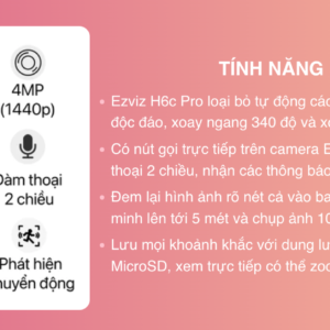 – Tính năng tuần tra tùy chỉnh: Chế độ tuần tra độc đáo, Ezviz H6C Pro tự động quay quét góc nhìn để loại bỏ điểm mù.