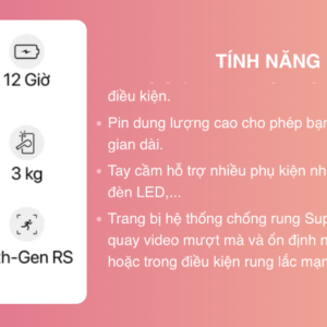 Nếu bạn đang tìm một chiếc gimbal tải trọng lớn với thời lượng pin cao thì đừng bỏ qua DJI Ronin RS4. Sản phẩm được thiết kế với kết cấu bền bỉ kết hợp cùng hệ thống nút điều khiển linh hoạt và dung lượng pin cao hứa hẹn sẽ mang tới trải nghiệm sử dụng hài lòng.
